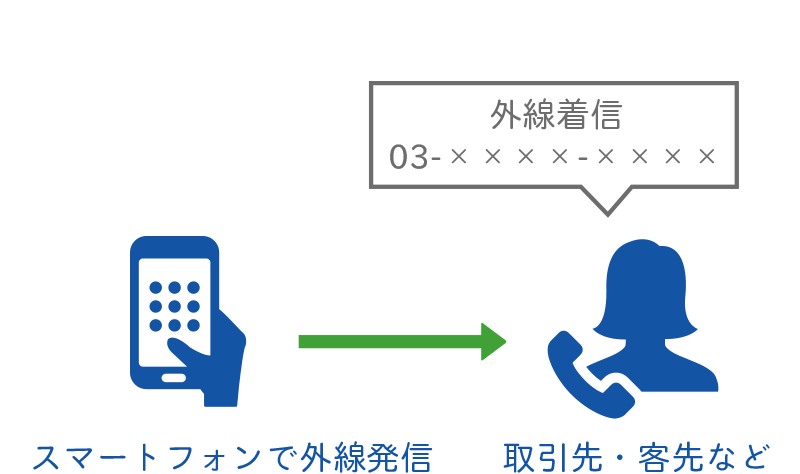 内線はもちろん、外線も会社の番号を使ってスマートフォンから通話が可能になります。